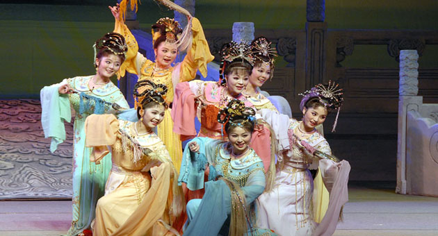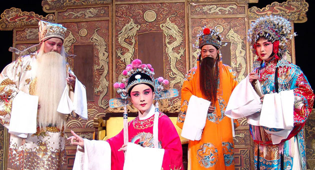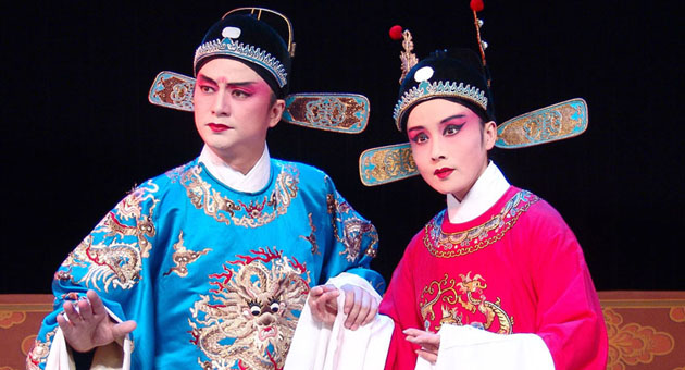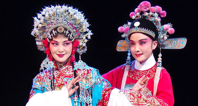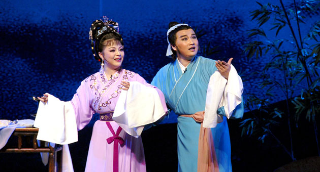黄梅戏,本名「黄梅调」,又称「采茶戏」,发源于湖北、安徽、江西三省交界的安庆地区,后吸收青阳腔、民歌、徽剧及其他剧种的表演技巧而更趋成熟。黄梅戏的表演质朴细致,以真实活泼见称,唱腔委婉,语言通俗,易于学唱,故特别适合年青观众欣赏。